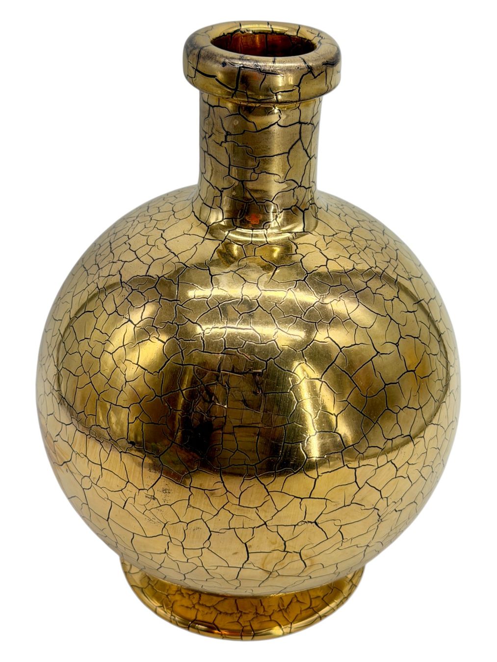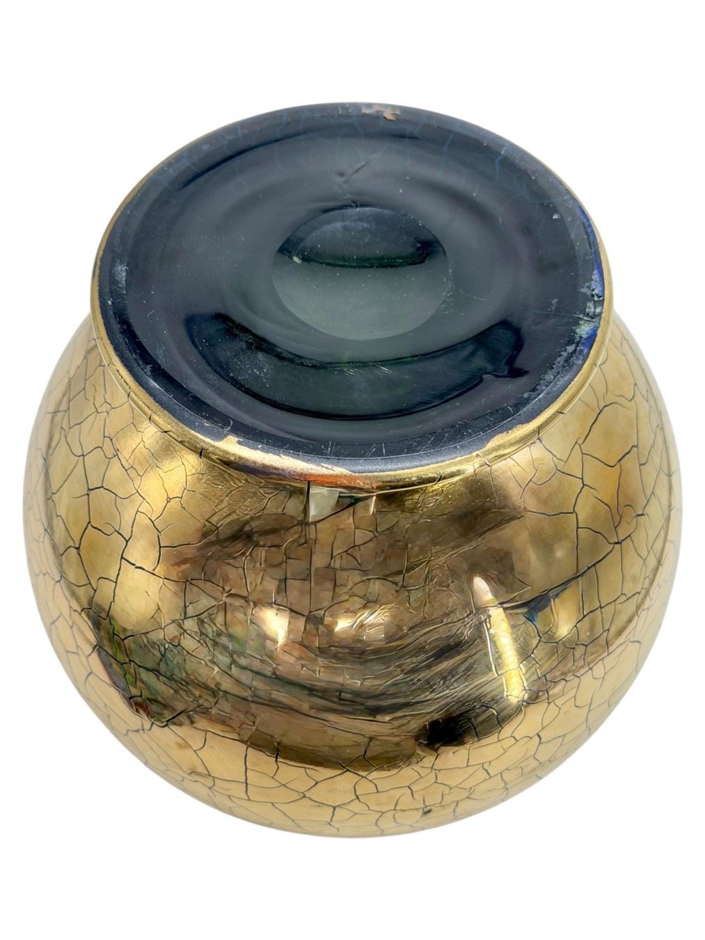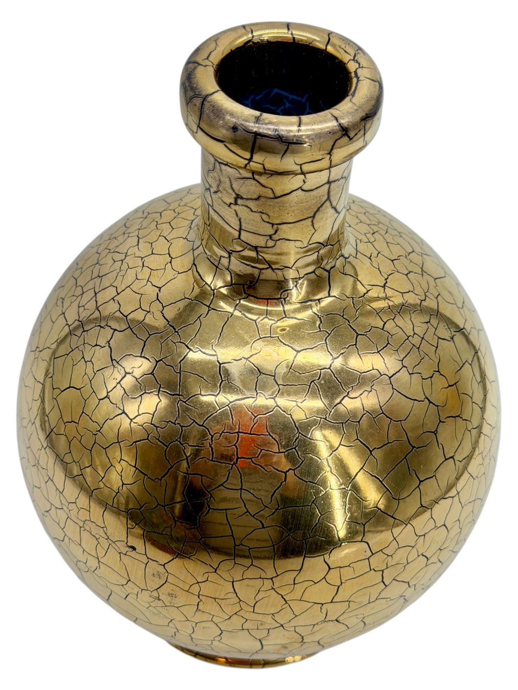 Vase de Saint-Prex émaillé bleu décor doré craquelé de 1935